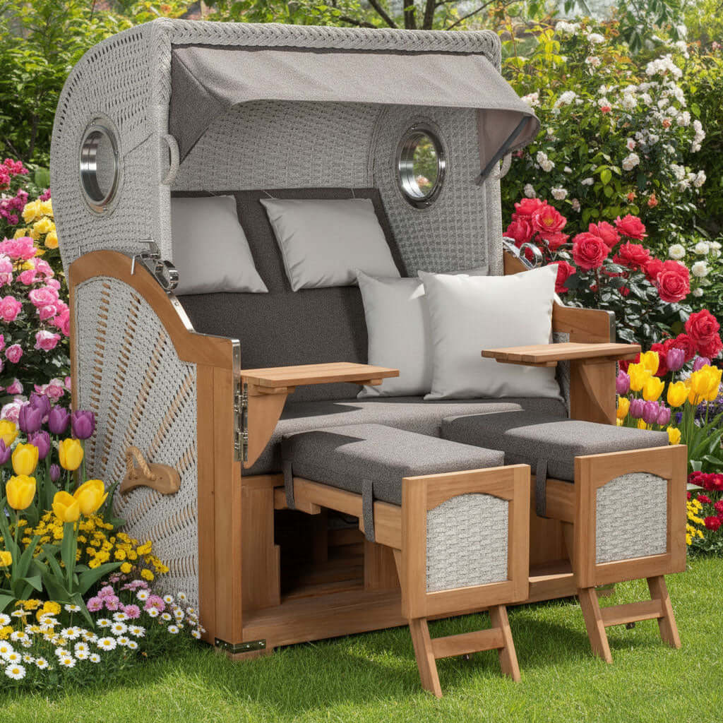 Mit einem Strandkorb der deVries PURE® Serie entscheiden Sie sich für langlebige Materialien, hochwertige Verarbeitung und zeitloses Design. Der Aruba ist für den dauerhaften Outdooreinsatz konzipiert – robust, formschön und bis ins Detail durchdacht.