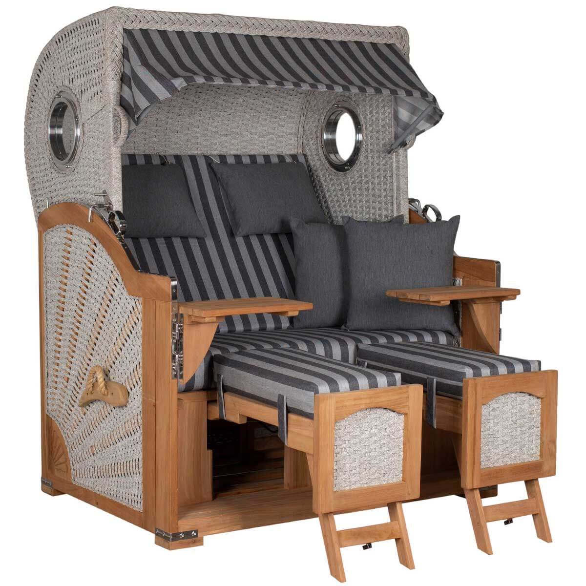 Mit einem Strandkorb der deVries PURE® Serie entscheiden Sie sich für langlebige Materialien, hochwertige Verarbeitung und zeitloses Design. Der Aruba ist für den dauerhaften Outdooreinsatz konzipiert – robust, formschön und bis ins Detail durchdacht.
