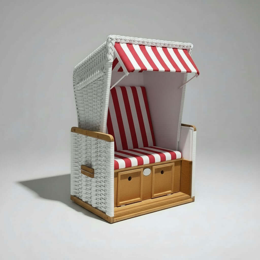 Egal ob für die Kleinen zu Haus oder für die Dekoration im Schaufenster… dieser Strandkorb-“ Nachwuchs“ wird immer beachtet. Ausstattung und Verarbeitung ähneln den großen Brüdern, jedoch ist der Oberkorb nicht verstellbar.