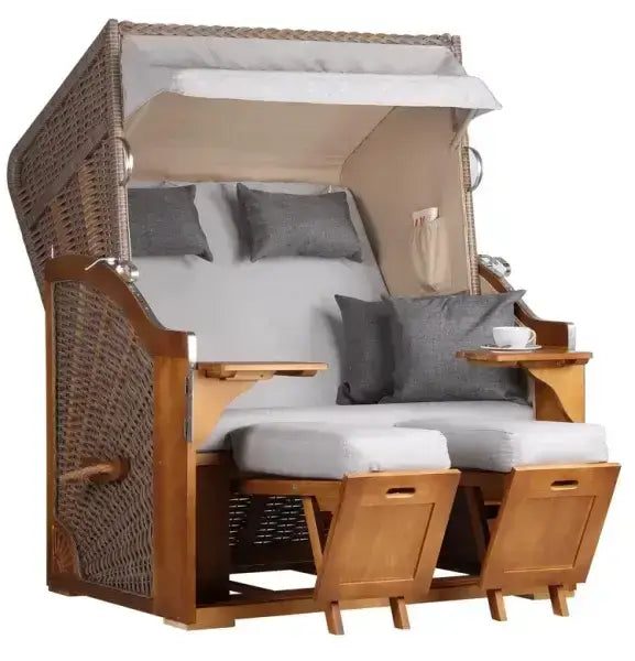 Der Strandkorb Schleswig Pinienholz in PE mokka - nostalgische Eleganz und moderne Ausstattung