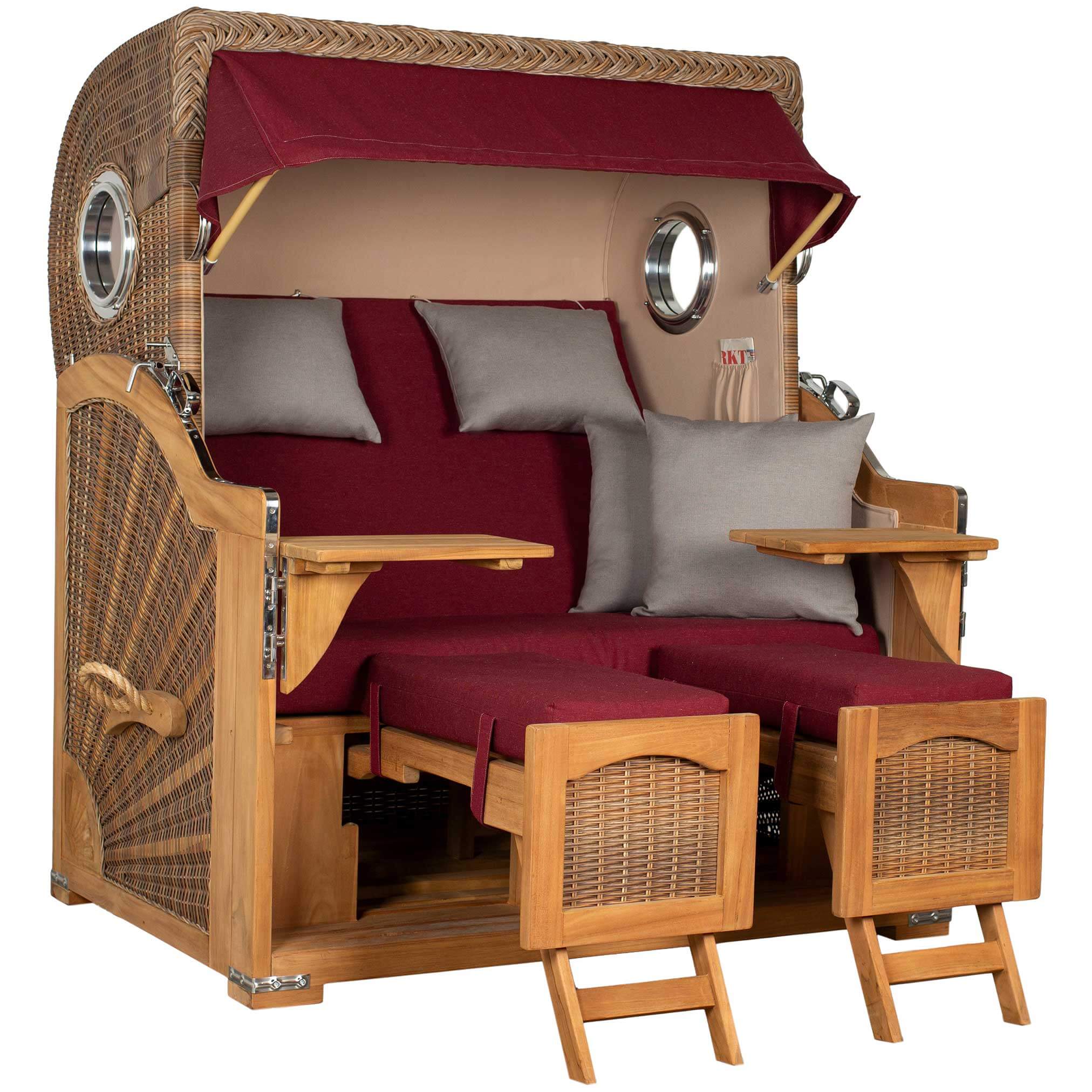 Mit dem luxuriösen Strandkorb Düne Teak PE banana, der aus robusten Teak-Holz und edlem PE-Geflecht besteht, erleben Sie eine Sommerferienstimmung auf Ihrer Terrasse! Dank der ausziehbaren Fußstützen, der dicken Polsterung und der hochwertigen Ausstattung ermöglicht Ihnen dieser atemberaubende Volllieger entspannte Tage und Abende Ihres Traumsommers mit einem lieben Menschen. Genießen Sie unvergleichliche Momente unter freiem Himmel!