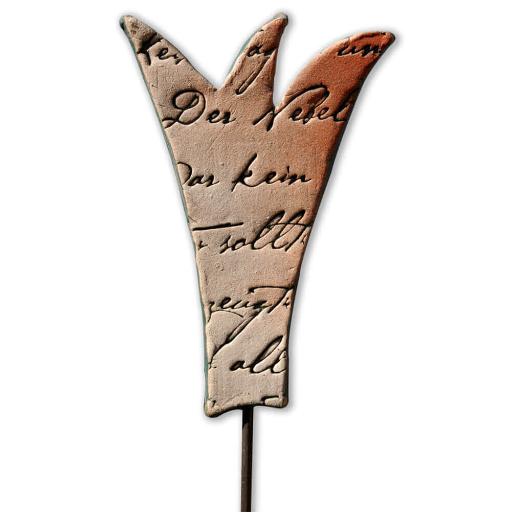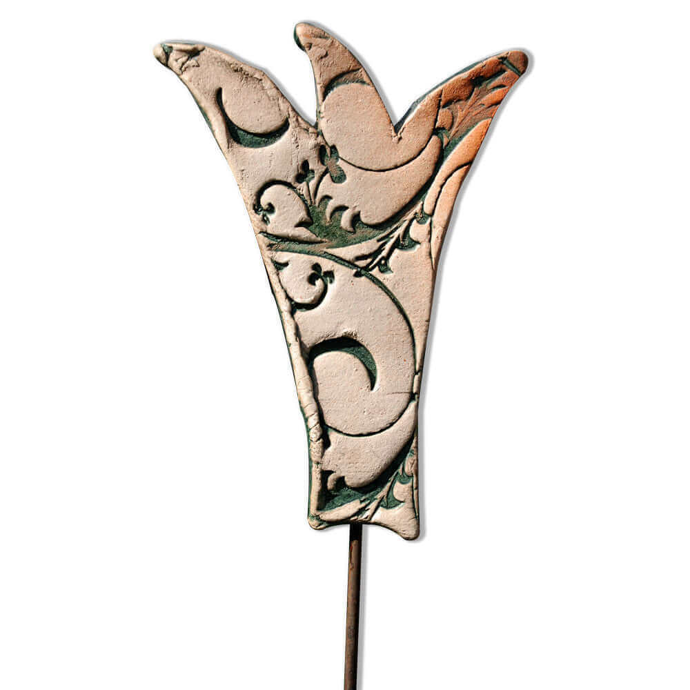 Sie besteht aus einer einzigartigen Keramik-Blüte, die sich hervorragend in Buchsbäumen oder zwischen Stauden macht. Mit ihrem auf einem Eisenstab (nicht enthalten) stehenden Design sorgt sie für einen interessanten Akzent in Ihrem Garten oder Anlage.