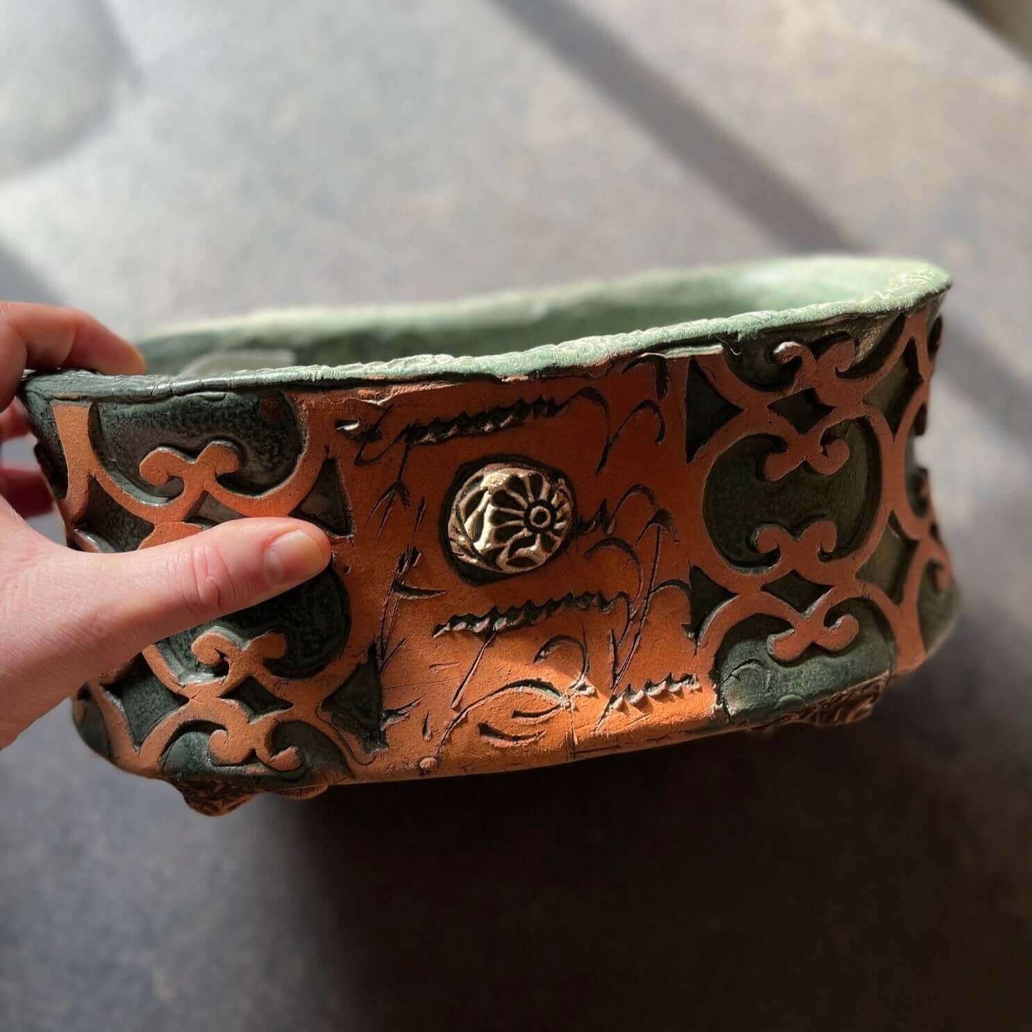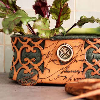 3005 Gartentopf Kräutertopf H 14 cm L 32 cm B 18 cm frostsicher mit dekorativem Fisch- und Musterrelief für Garten und Balkon