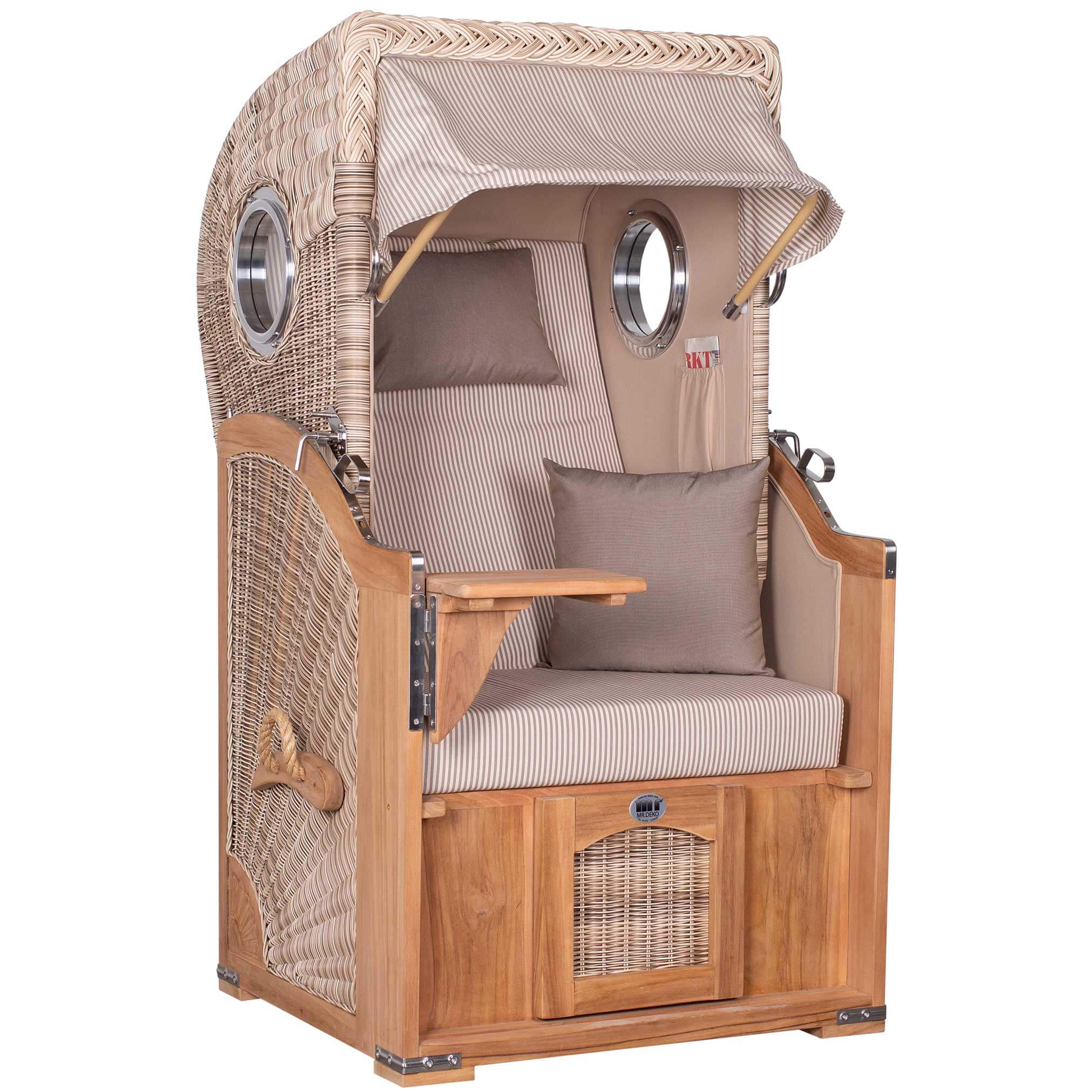Strandkorb Mr. Deko Düne Bullaugen Teak PE-shell 1-Sitzer Dessin 510