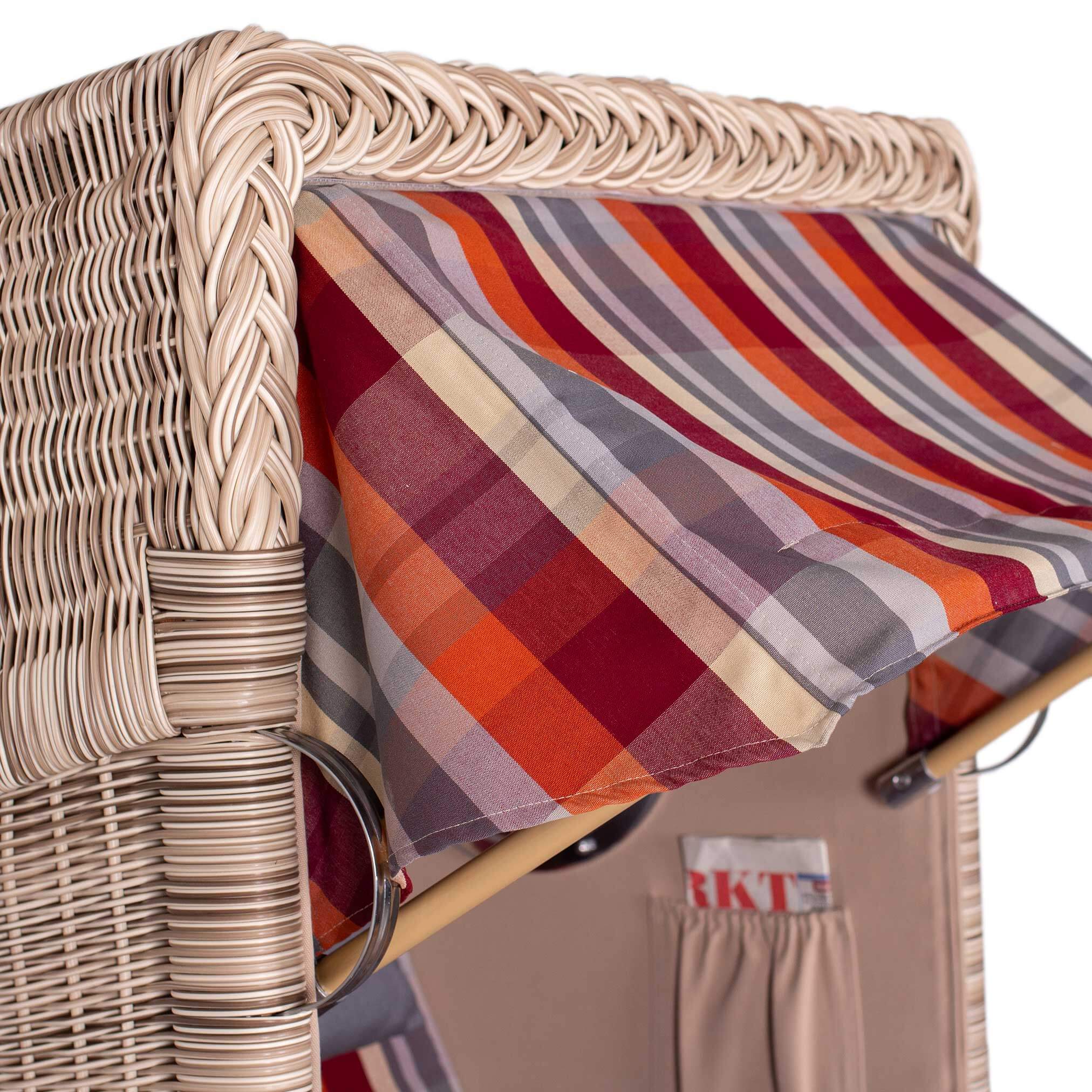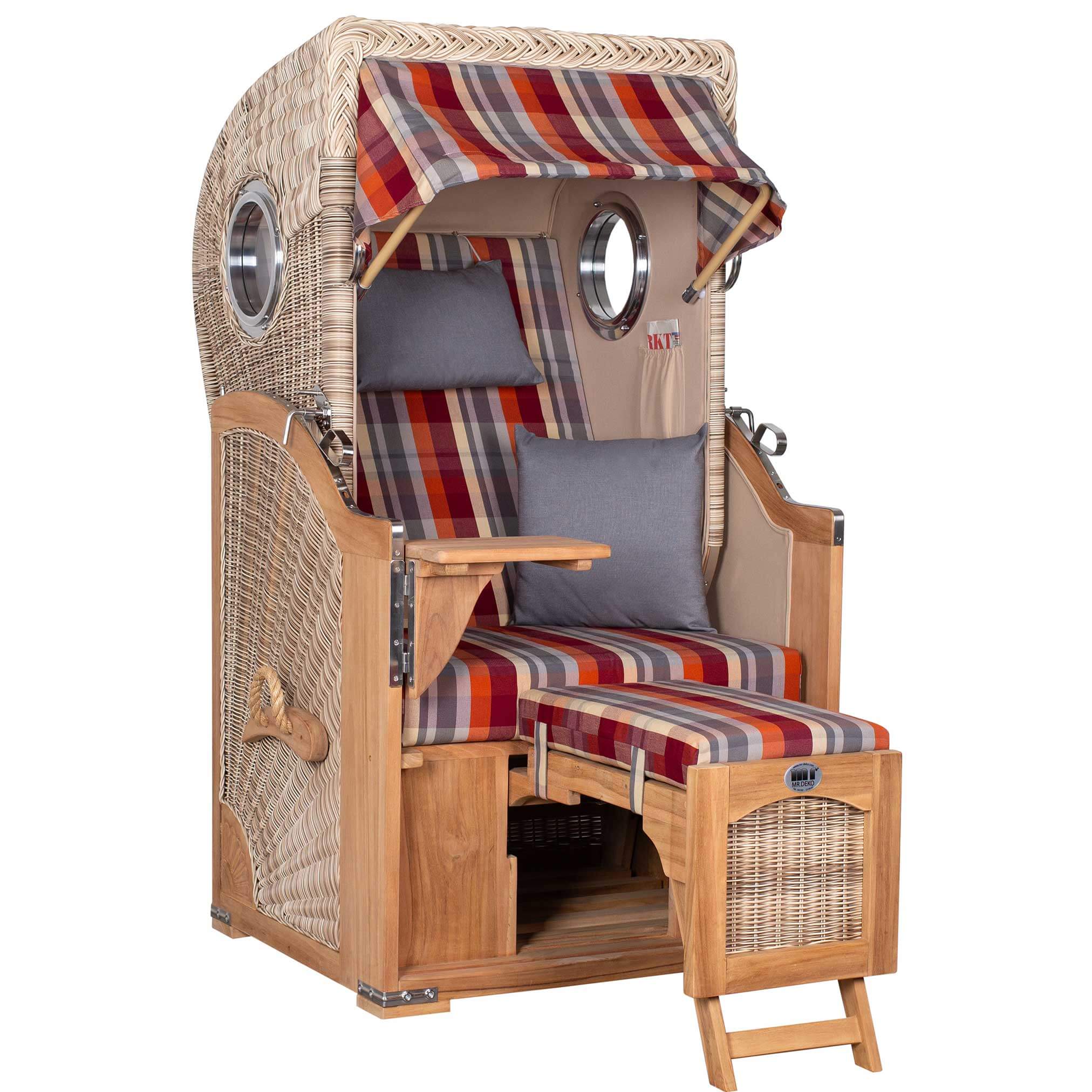 Strandkorb Mr. Deko Düne Bullaugen Teak PE-shell 1-Sitzer Dessin 584