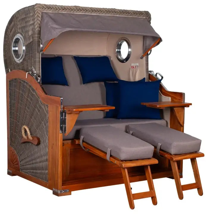 Strandkorb Baltikum Bullaugen Mahagoni Geflecht PE grey 2,5 Sitzer XL Dessin 589