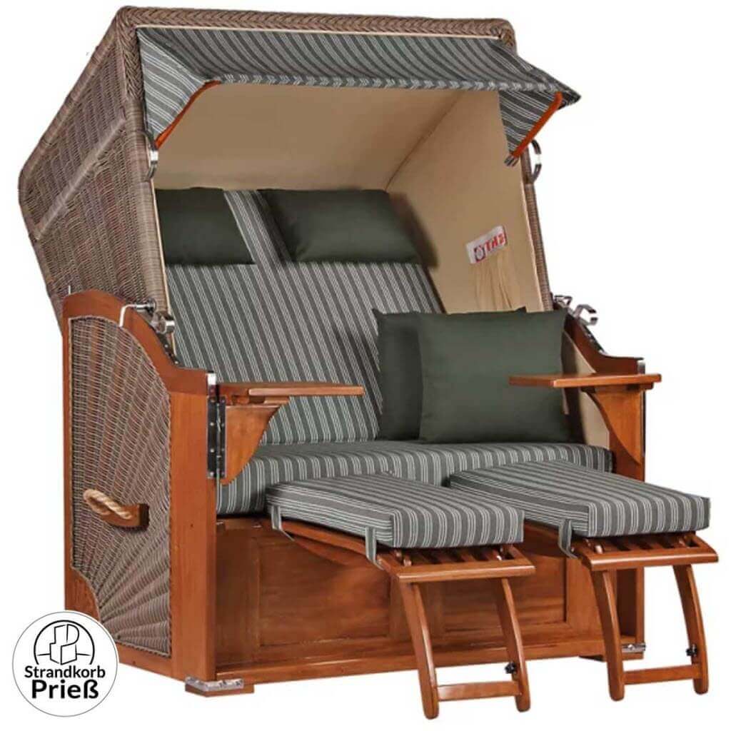 Strandkorb Seeblick Mahagoni PE grey 2-Sitzer Dessin 504-gruen