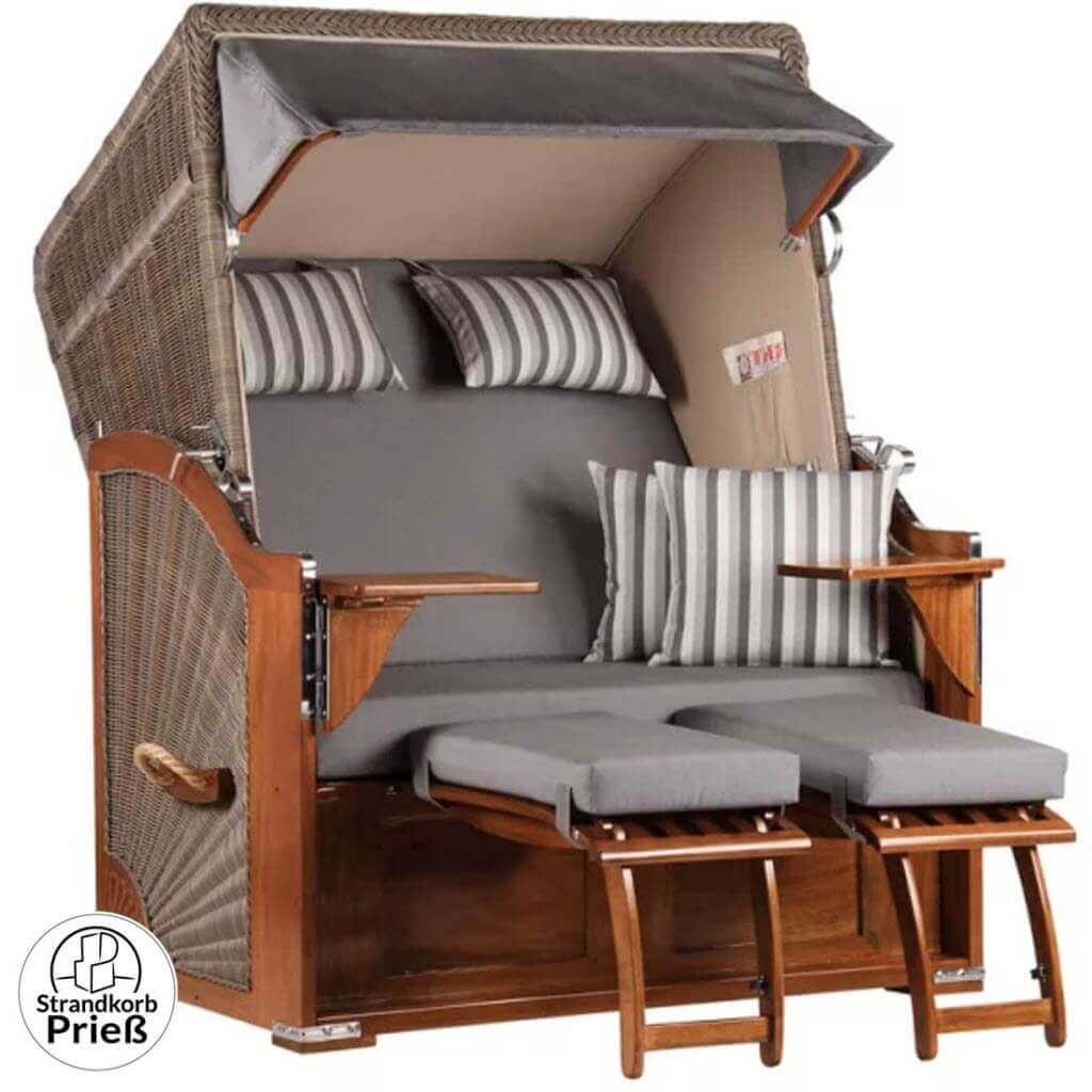 Strandkorb Zweisitzer Seeblick Mahagoni PE grey - Erlebnis Outdoor für jede Jahreszeit