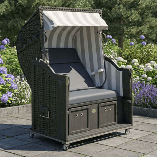 Strandkorb Sonnenpartner Modell Classic PVC anthrazit, Holz dunkelgrau lasiert, Dessin Folie grau weiss anthrazit 830-210