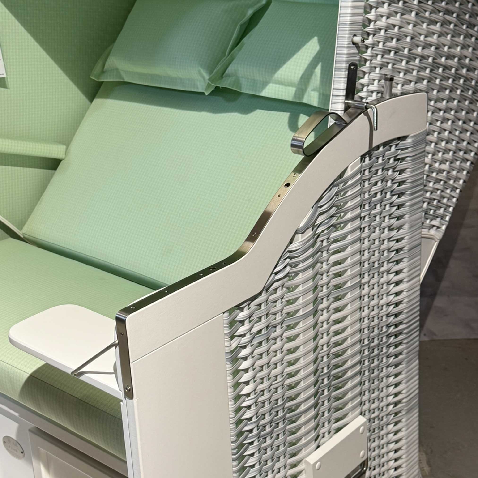 Strandkorb Sonnenpartner Modell Classic PE white-washed, Holz weiß, Dessin Mintgrün 72