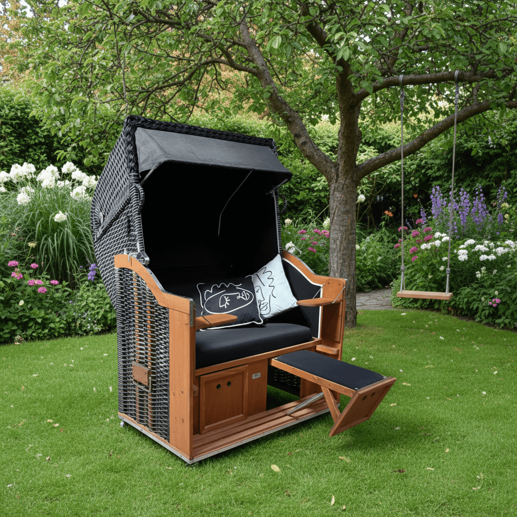Strandkorb Ostsee, Dessin schwarz - wie abgebildet