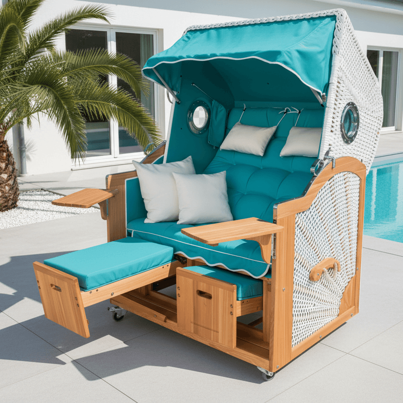 • Fertig aufgebauter Strandkorb, Oberkorb aus einem Stück