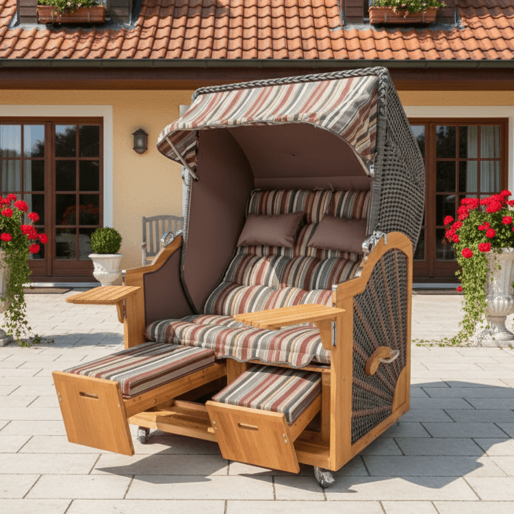• Fertig aufgebauter Strandkorb, Oberkorb aus einem Stück