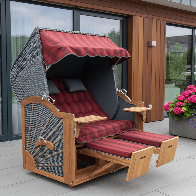 • Fertig aufgebauter Strandkorb, Oberkorb aus einem Stück