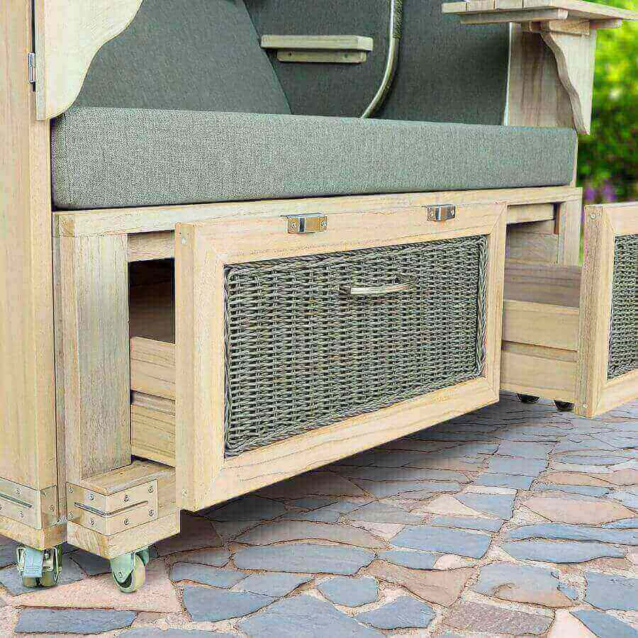 | Ausstattung: | transparente Windschutz-Folie zwischen Geflecht und Stoff; Handy- und Zeitungstasche (außer bei PVC-Bezug) |