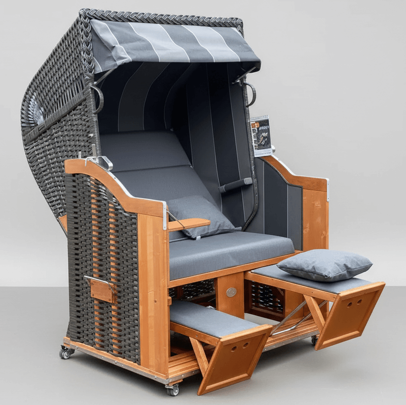 8035 Strandkorb Sonnenpartner Modell Classic Geflecht anthrazit, Holz lasiert, Dessin grau Seiten 29