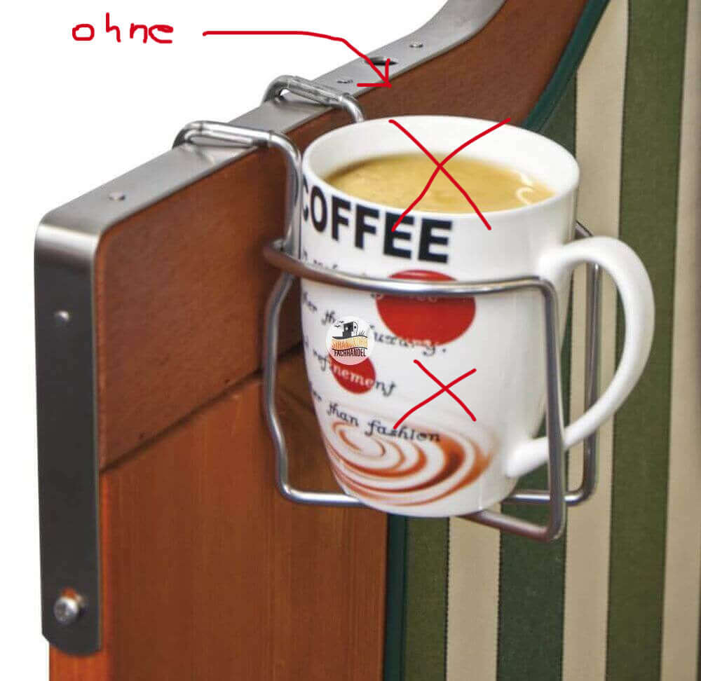 Ideal zum Überhaken für Seitenteile bis ca. 25 mm Dicke. Der Getränkehalter ist aus einem Stück Edelstahl-Draht gebogen – dadurch besonders stabil, langlebig und optisch ansprechend. So schaffen Sie zusätzlichen Platz auf dem Seitentisch und genießen mehr Komfort beim Entspannen.
