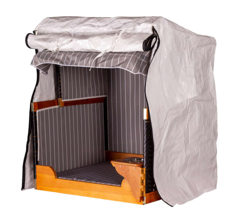 Genießen Sie luxuriösen Komfort am Strand, während Ihr treuer Begleiter in unserem exklusiven Strandkorb entspannt. Der robuste PE-Korb bietet Schutz vor Sand und Wind, während das elegante grau gestreifte Design ein echter Hingucker ist. Perfekt für gemeinsame Stunden am Meer oder im Garten.