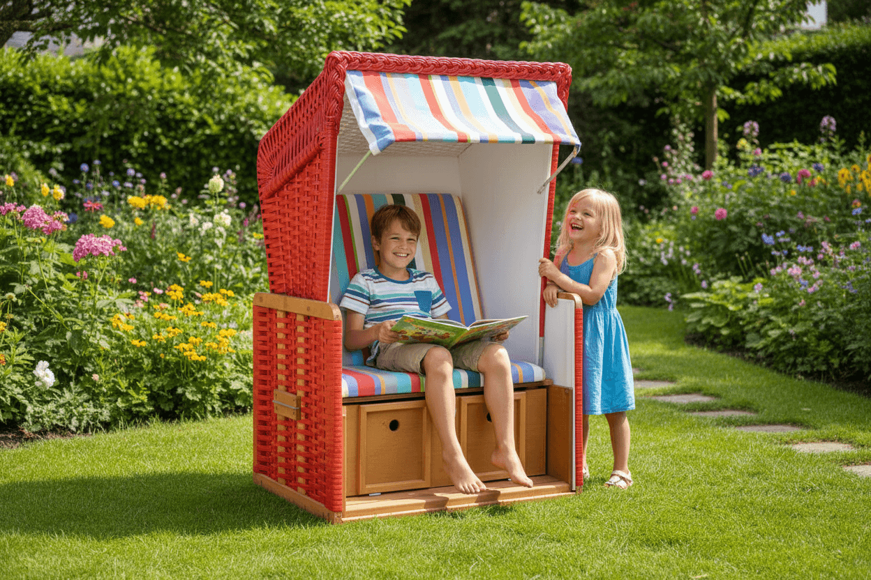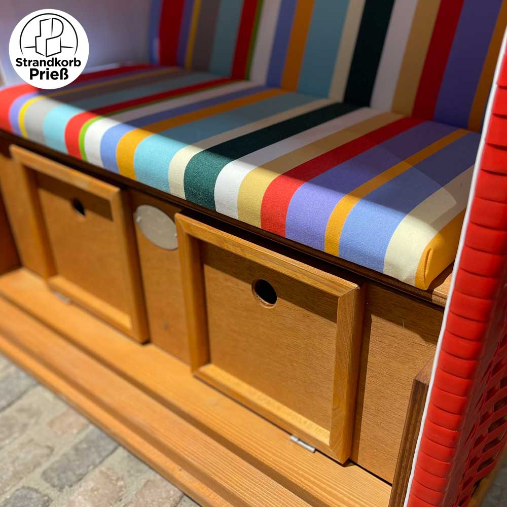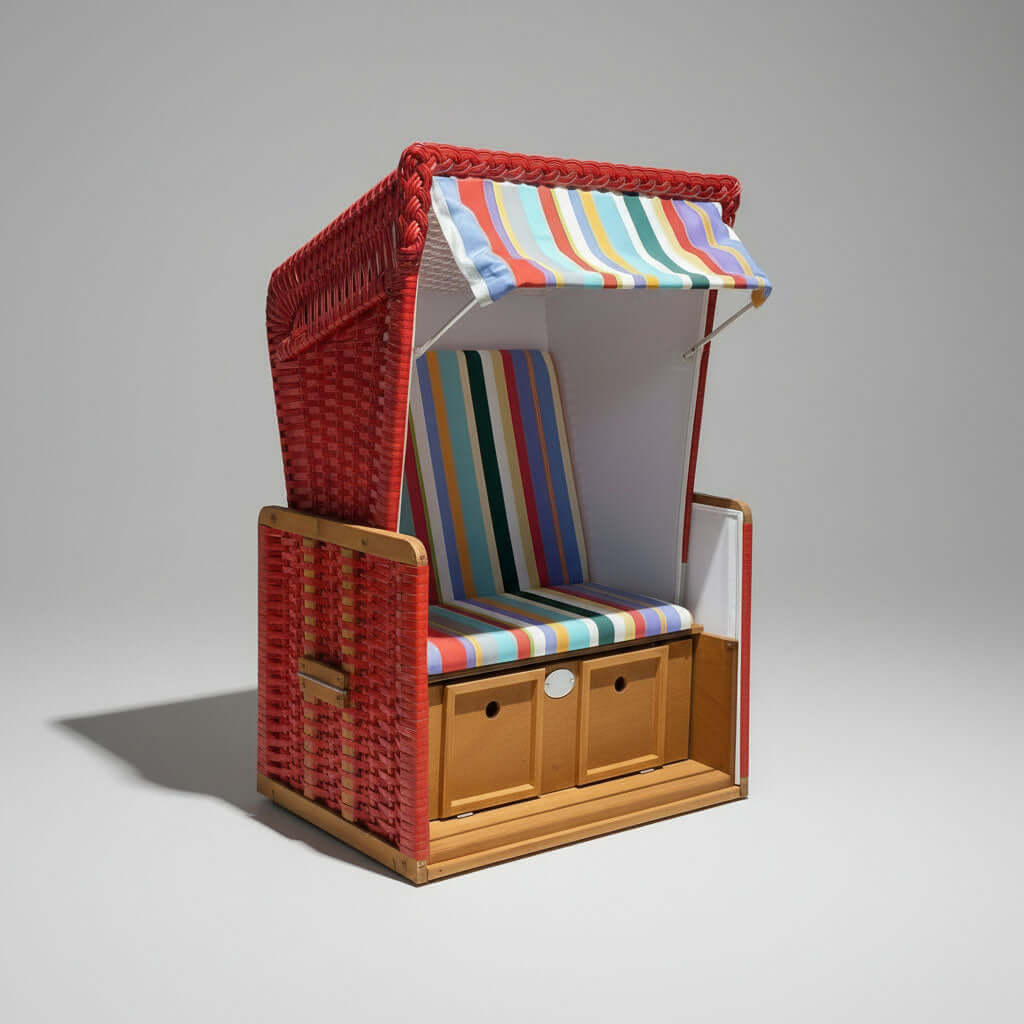 Egal ob für die Kleinen zu Haus oder für die Dekoration im Schaufenster… dieser Strandkorb-“ Nachwuchs“ wird immer beachtet. Ausstattung und Verarbeitung ähneln den großen Brüdern, jedoch ist der Oberkorb nicht verstellbar.