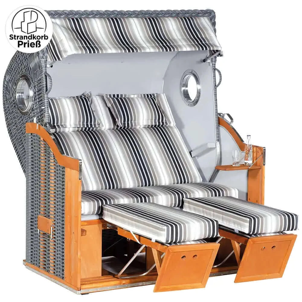 8084 Strandkorb Sonnenpartner Modell Classic PE Geflecht onix, Bullaugen, Holz lasiert, Dessin 172, Himmel Seiten 716