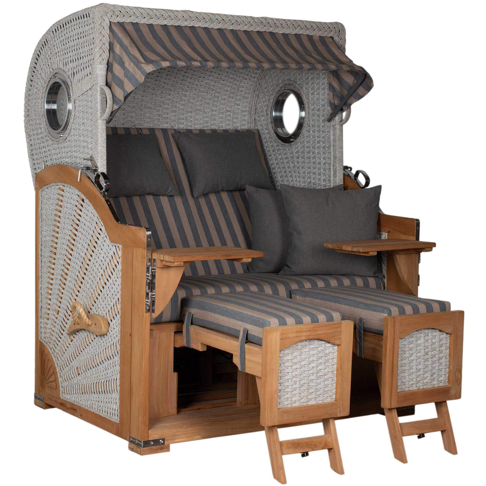 Mit einem Strandkorb der deVries PURE® Serie entscheiden Sie sich für langlebige Materialien, hochwertige Verarbeitung und zeitloses Design. Der Aruba ist für den dauerhaften Outdooreinsatz konzipiert – robust, formschön und bis ins Detail durchdacht.