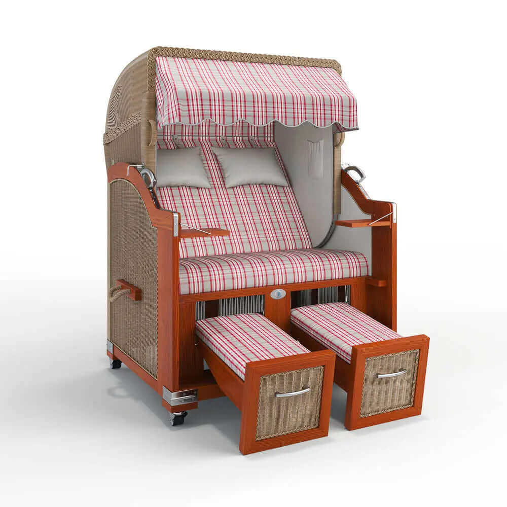 Das Modell Hörnum ist ein kompakter und komfortabler 2-Sitzer aus edlem Mahagoniholz und stellt eine preiswerte Alternative zum Luxus-Modell Keitum dar. Sinnvolle Details wie die herausziehbaren Fußablagen oder die Zeitungs- und Handytasche machen den Hörnum zum unkomplizierten Rückzugsort.