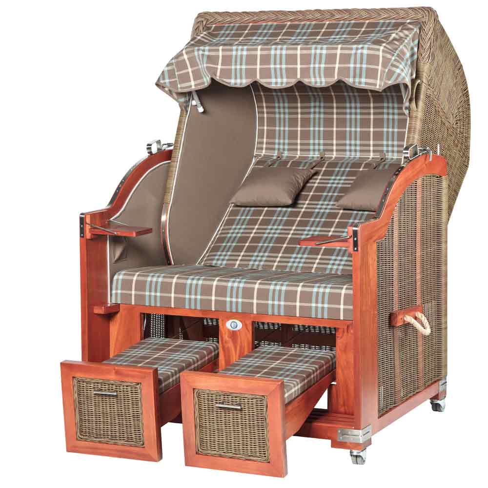 Strandkorb Hörnum Mahagoni 120 cm Rattangeflecht Dessin Malaga 62409