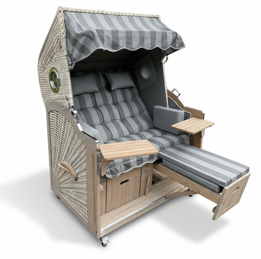 • Fertig aufgebauter Strandkorb, Oberkorb aus einem Stück