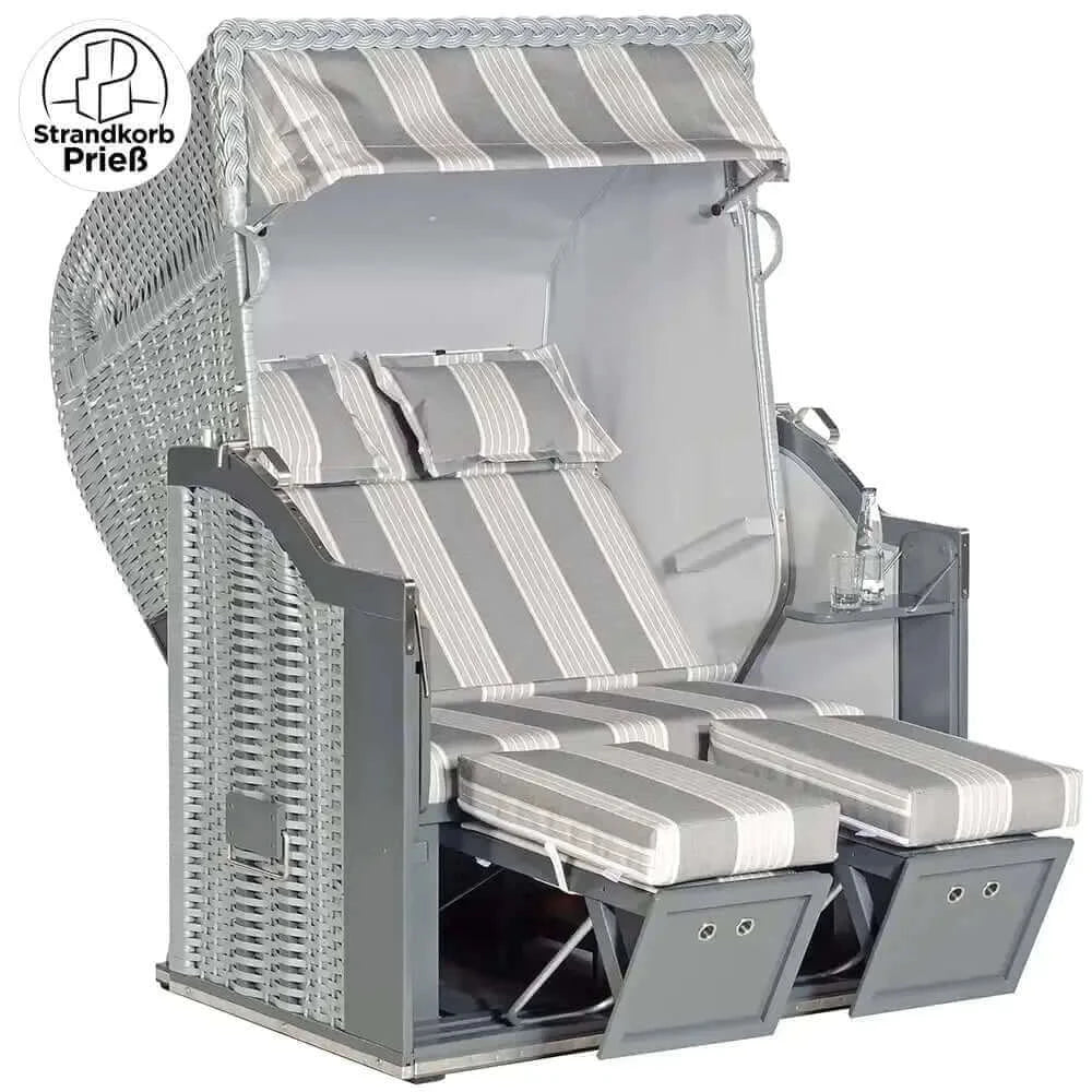 107 Strandkorb Sonnenpartner Modell Classic Geflecht silber, Holz grau, Dessin 114 716 Seiten hellgrau meliert