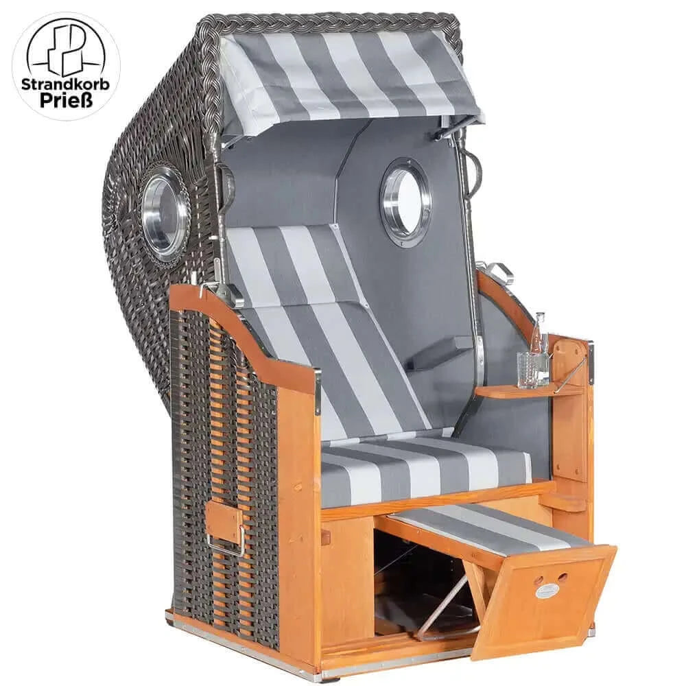 8026 Strandkorb Sonnenpartner Modell Classic Geflecht anthrazit, Holz lasiert, Dessin 121 Seiten uni grau