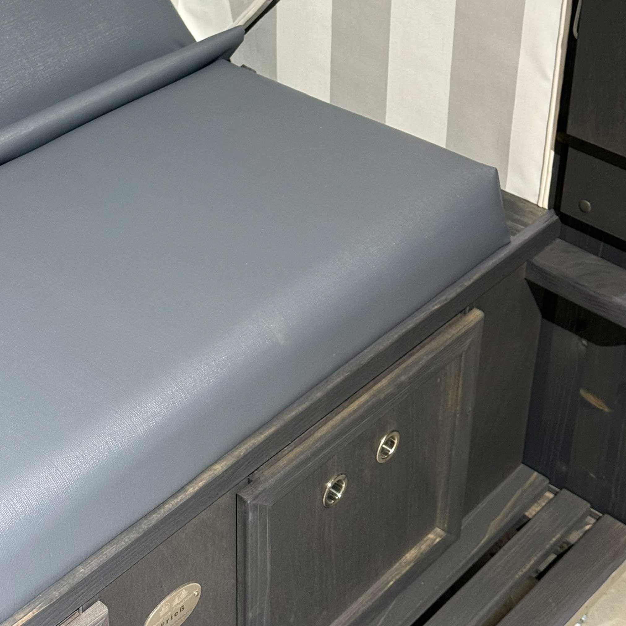 Strandkorb Classic Ostsee, Classic PVC anthrazit, Holz dunkelgrau lasiert, Dessin grau weiss anthrazit 830-210