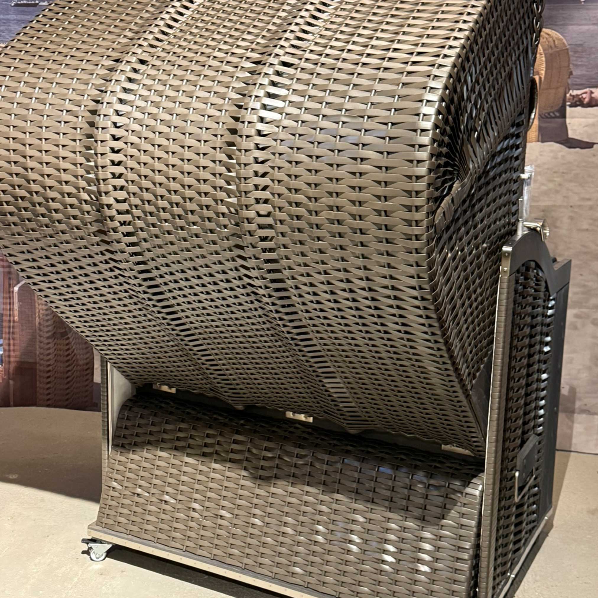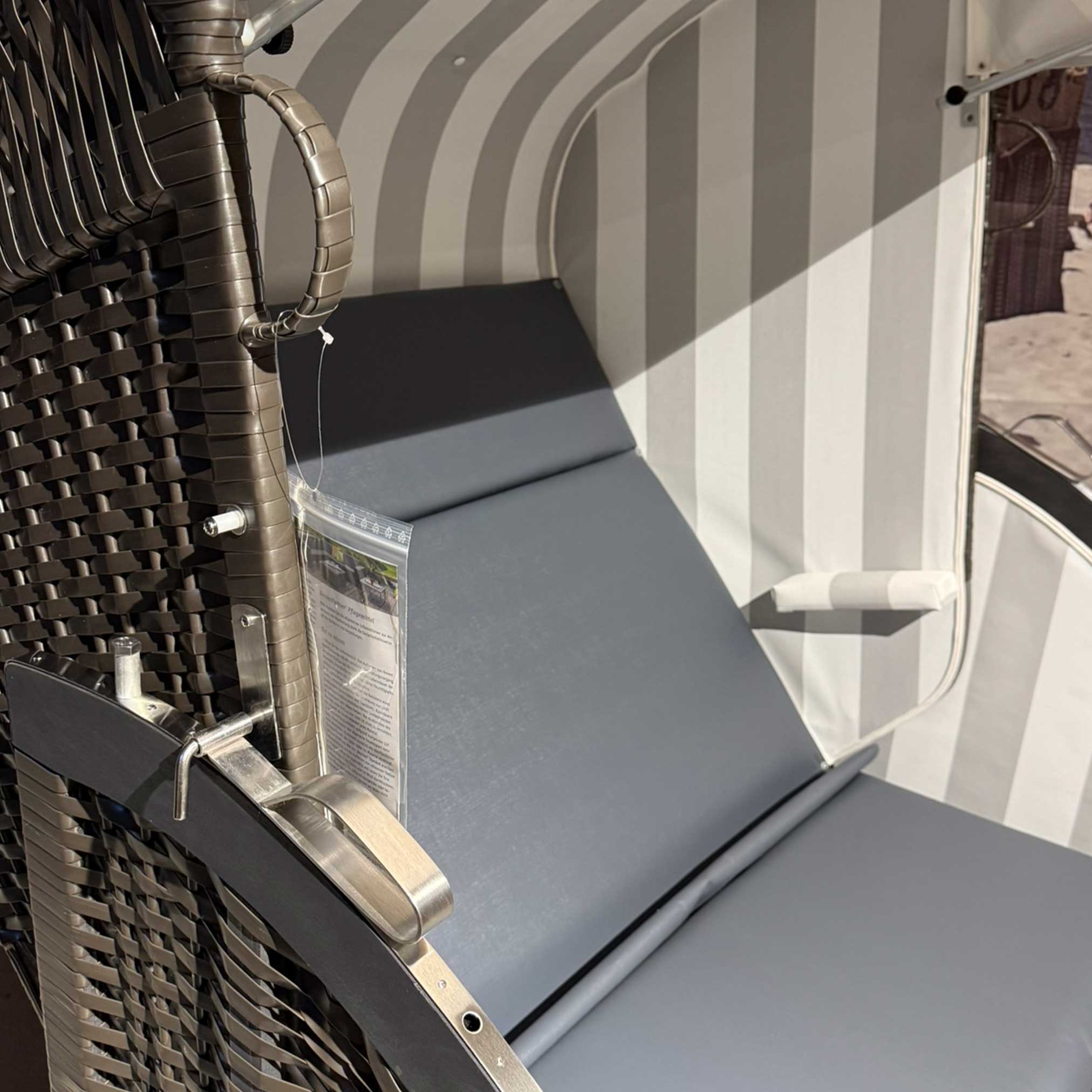 Strandkorb Sonnenpartner Modell Classic PVC anthrazit, Holz dunkelgrau lasiert, Dessin Folie grau weiss anthrazit 830-210