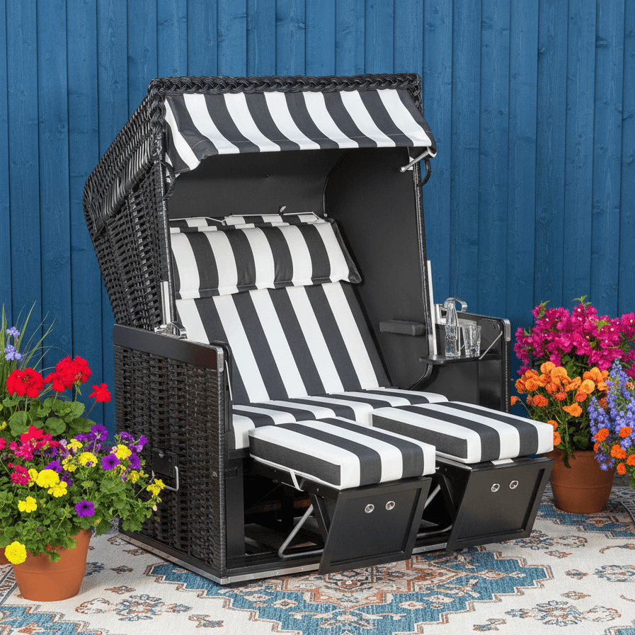 8109 Strandkorb Sonnenpartner Modell Konsul Geflecht schwarz, Holz schwarz, Dessin 83, Himmel Seiten 711