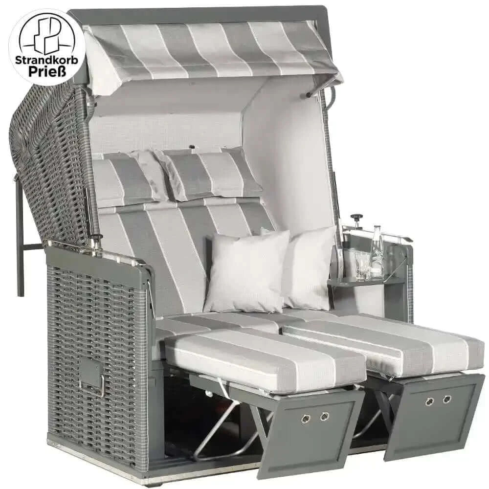 8208 Strandkorb Sonnenpartner Modell Präsident Mahagoni grau lackiert Geflecht onix, Dessin 36 Innenstoff grau 723 wie abgebildet