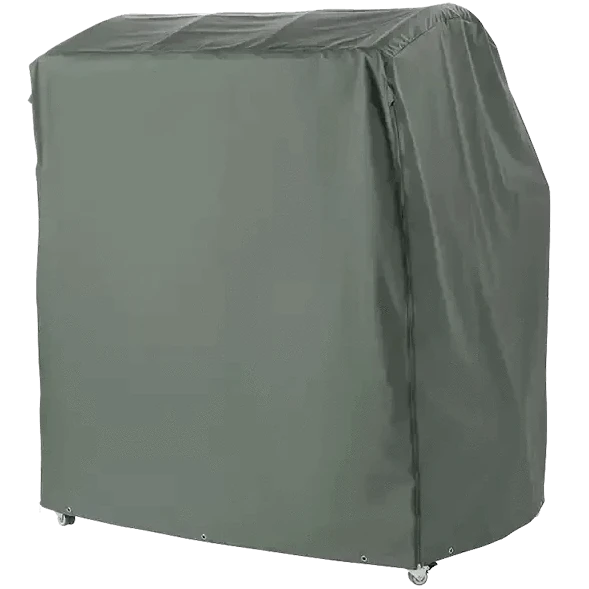TeakSafe Abdeckhaube. Atmungsaktives PU-(Polyurethan-)beschichtetes Polyamid-Gewebe. Reißfest, formstabil und wasserdicht. Verstärkter Rand mit Aluminium-Ösen. Das von uns verwendete Material besteht zu 58% aus Polyester und zu 42% aus Polyurethan.
